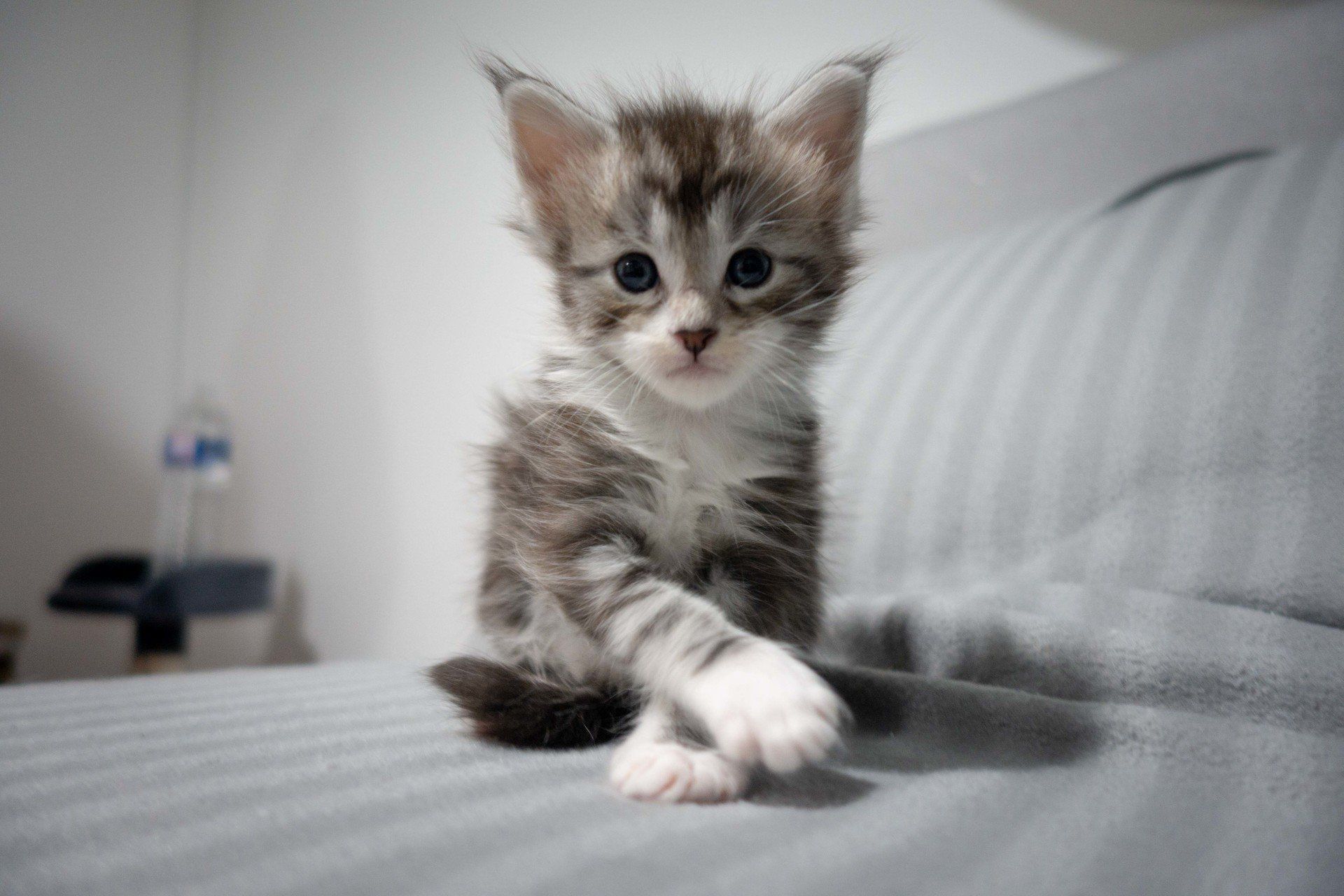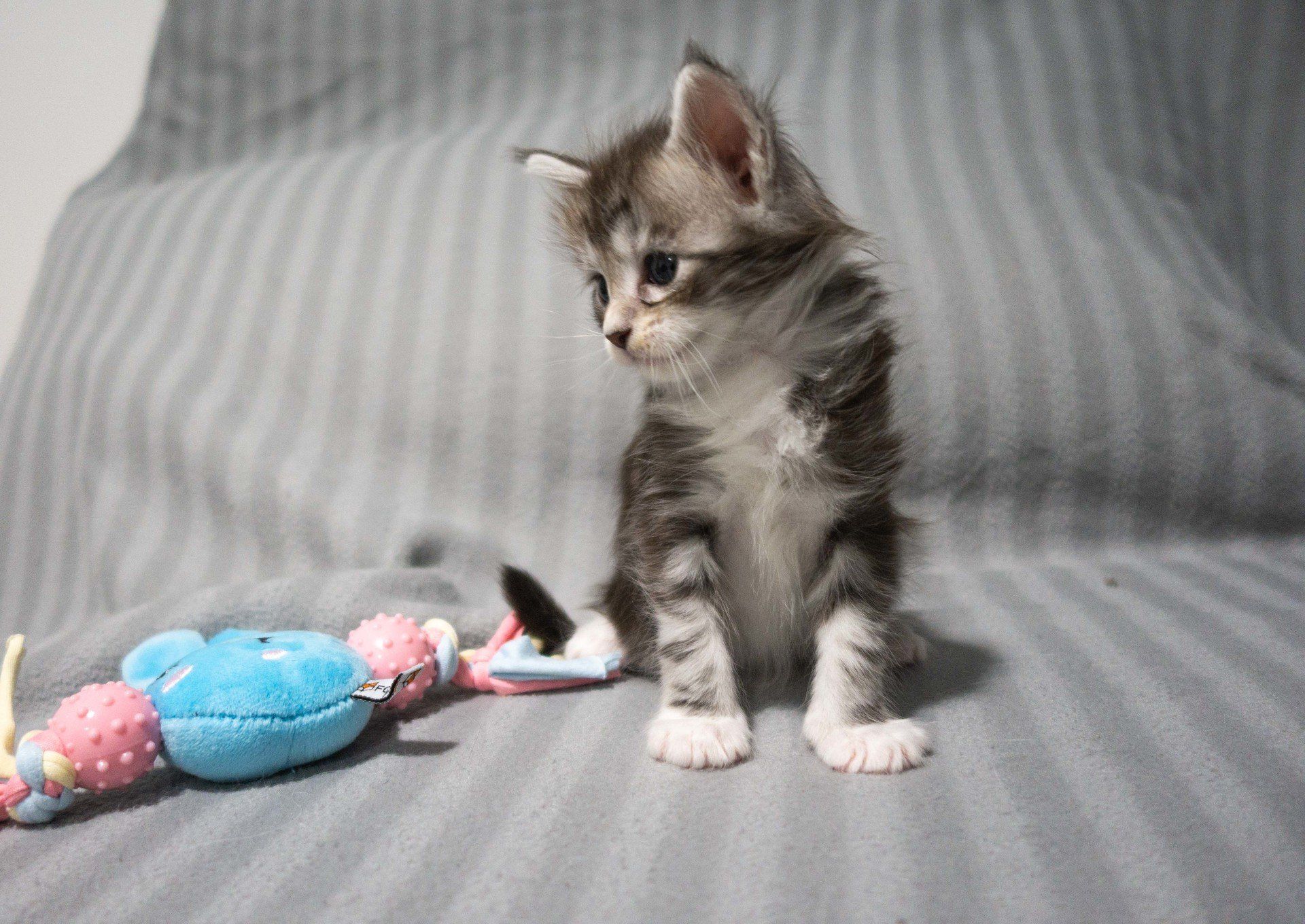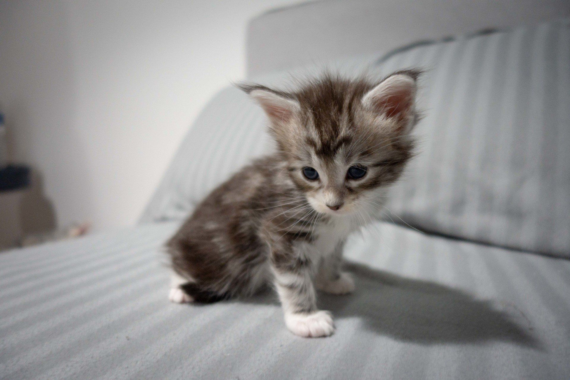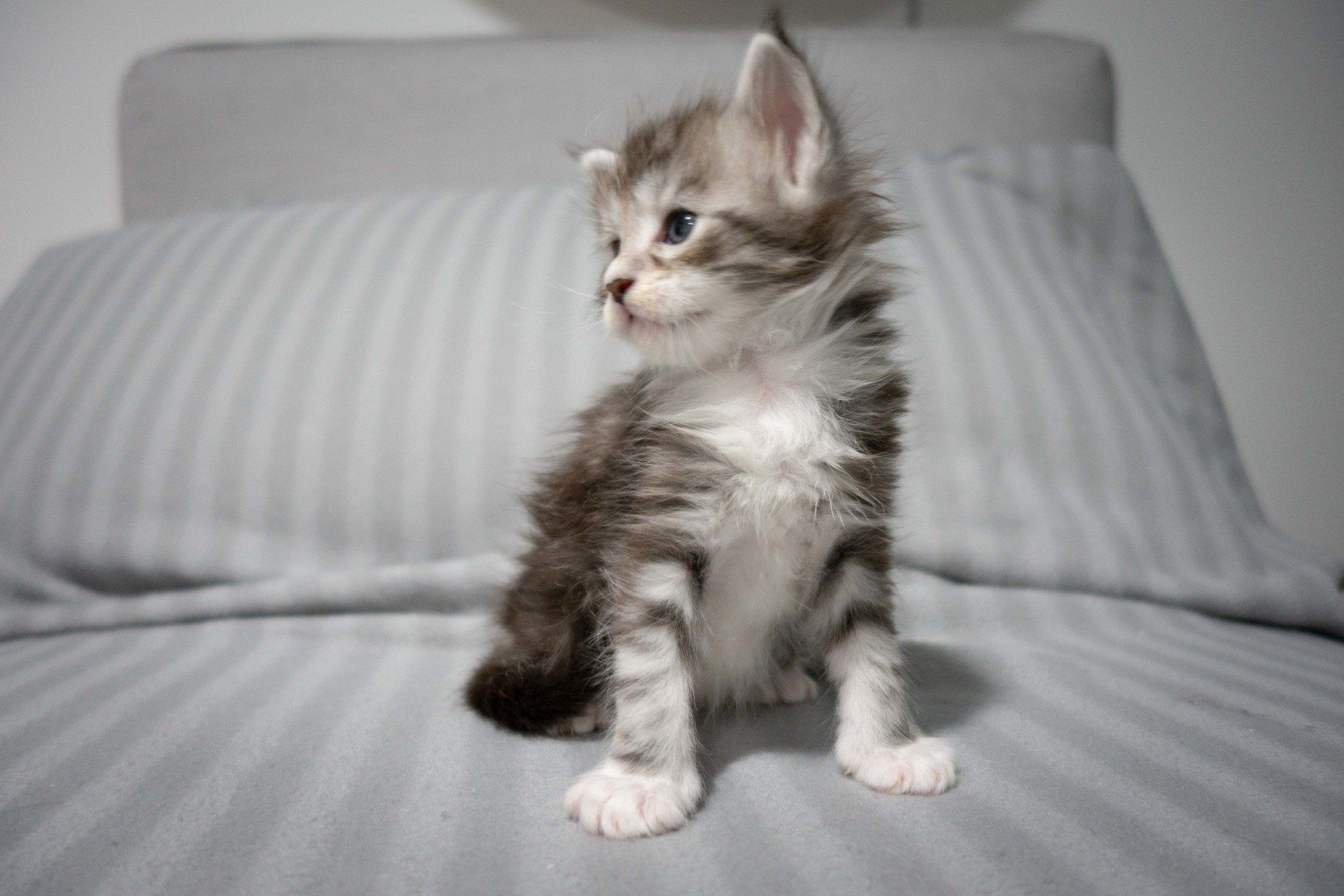 C'est le troisième de la portée, c'est un mâle Black Silver Blotched Tabby et Blanc.